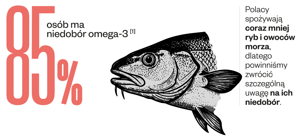 Według analiz globalnych nawet 80–85 proc. populacji ma zbyt niski poziom kwasów omega-3 w diecie lub w tkankach. Kwasy te są ważne m.in. dla rozwoju mózgu, wzroku, pracy układu sercowo-naczyniowego i immunologicznego. Ich najlepszym źródłem są tłuste ryby morskie. Narodowe Centrum Edukacji Żywieniowej podaje jednak, że przeciętny Polak zjada rocznie o 6 kg ryb mniej, niż wynosi średnia światowa.